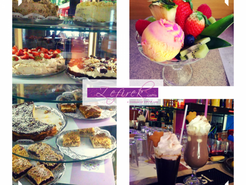 Kawiarnia Zefirek w Świnoujściu - z tradycją od 1978 roku. Ciasta z naturalnych składników, aromatyczne kawy i obfite desery lodowe. Duży wybór herbat. "Zefirek pośród palm", "Chwila rozkoszy", "Różowy kociak", "Antonio" i "Pokusa Babuni" to tylko niektóre z koktajli, które można zamówić w Zefirku.